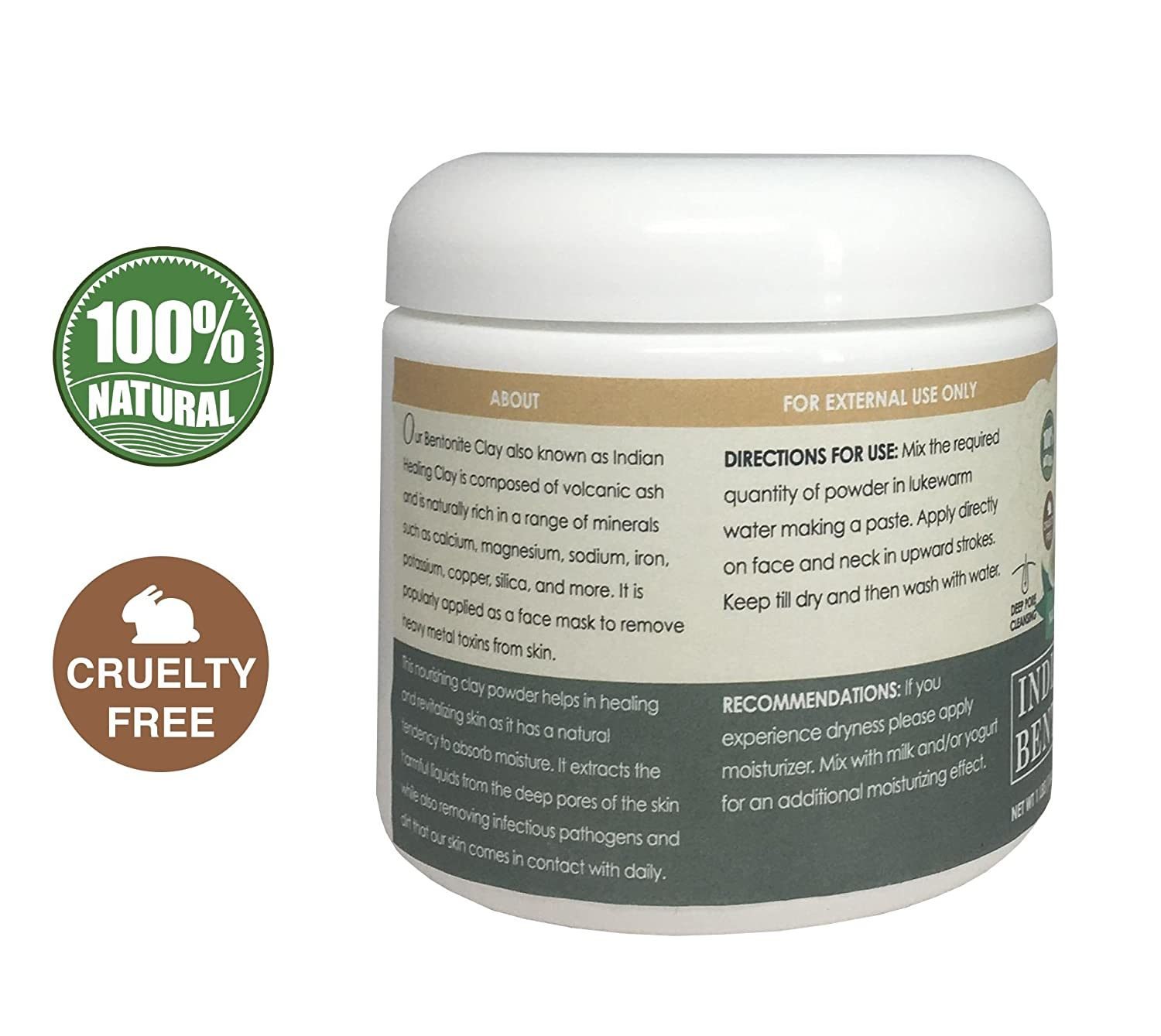 Pride of India incorporates organically-grown food and herbal products from India into our daily life. Our all-natural ingredients help enhance the overall health of the human body. Pride India is family owned and operated, and we pack our products in the USA. Our Bentonite Clay, also known as Indian Healing Clay, is composed of volcanic ash and naturally rich in a range of minerals such as calcium, magnesium, sodium, iron, potassium, copper, silica, and more. It is popularly applied as a face mask to remove heavy metal toxins from skin. This nourishing clay powder helps heal and revitalize skin because of its natural tendency to absorb the moisture it comes in contact with. It extracts the harmful liquids from the deep pores of the skin while also removing infectious pathogens and dirt that our skin comes in contact with daily. To use this face mask powder, mix the required quantity of powder in lukewarm water. The consistency should be like a paste. Apply the paste directly onto your skin, including the face and neck. For the best application, make upward strokes. Leave the mask on until the paste dries, and then wash your face with water. If your skin feels dry after applying the mask, apply moisturizer. You can also mix the face mask powder with milk and/or yogurt for an additional moisturizing effect. This healing face mask is vegan and cruelty-free, so it hasn’t been tested on animals. Get smooth and flawless skin naturally with Pride of India’s Bentonite Clay Face Mask Powder. Check out Pride of India’s other products for more all-natural solutions for health and beauty.